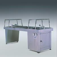 Our anatomic table, completely stainless steel, has a plane suitable inclined for the water outflow and a perimetric border in order to contain liquids.